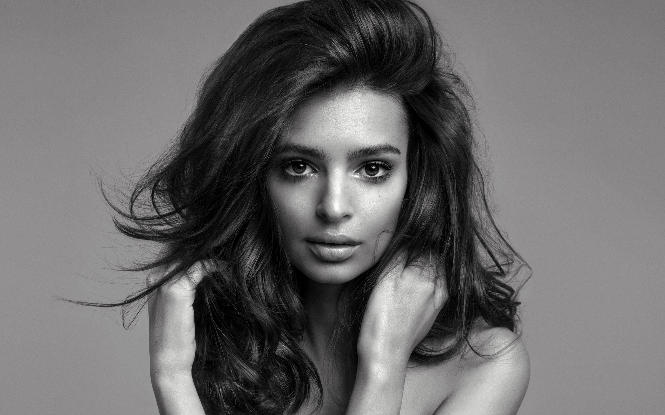 Wallpaper American actress, model Emily Ratakowski, black and white photo