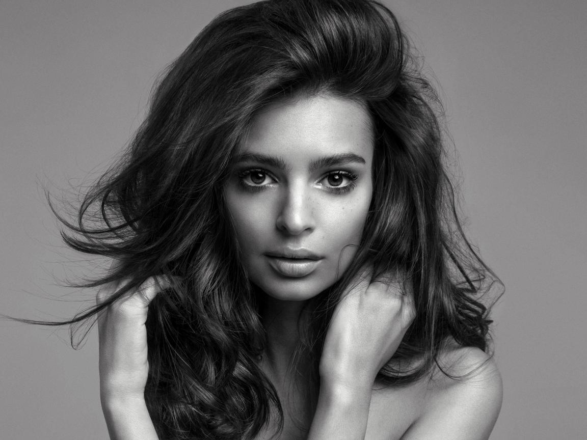 Wallpaper American actress, model Emily Ratakowski, black and white photo