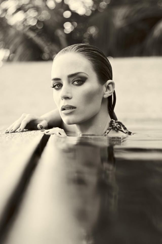 » Wallpaper Actress Emily Blunt in the water, black and white photo