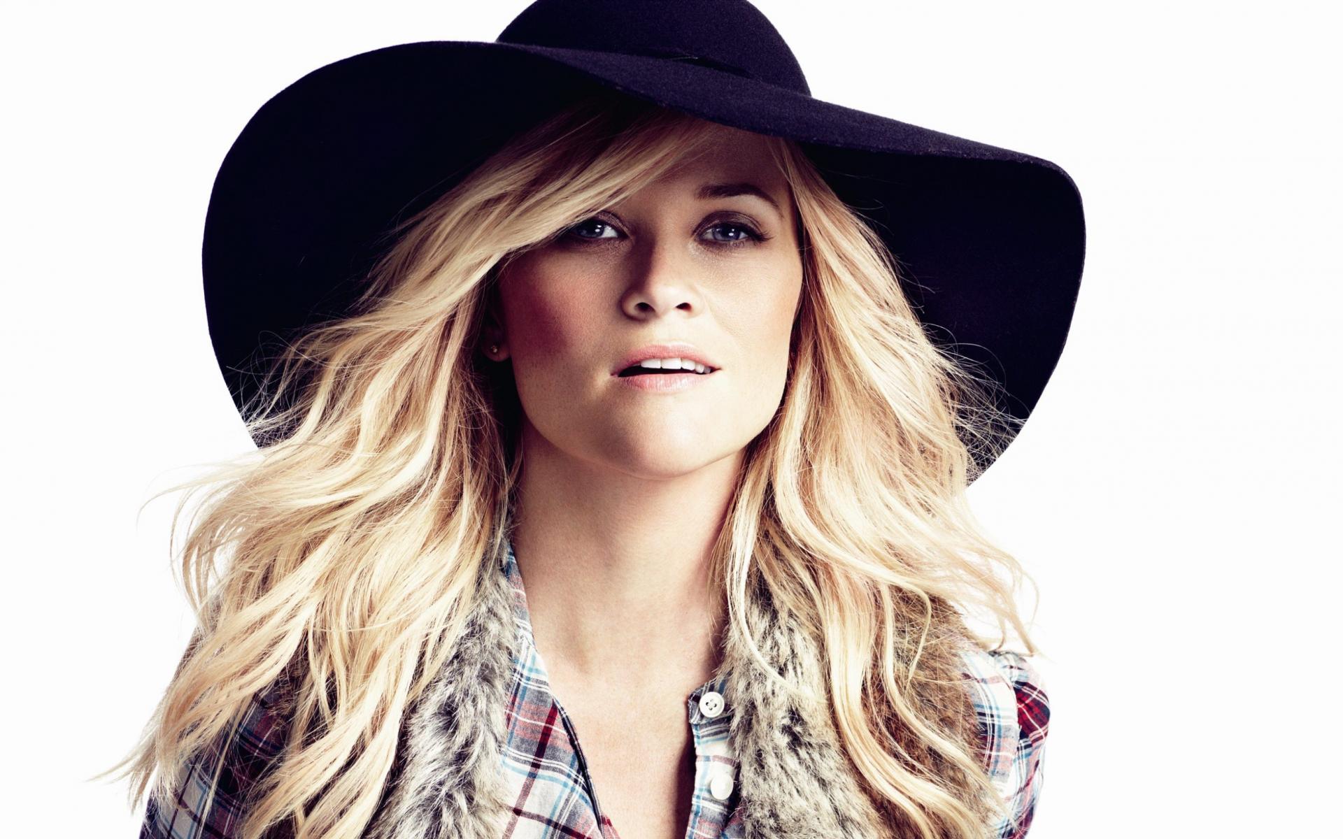 Wallpaper Beautiful actress Reese Witherspoon in a big black hat