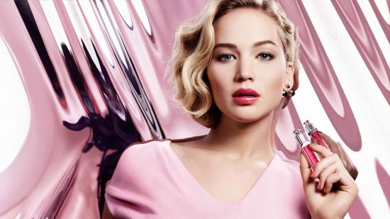 Wallpaper Popular actress Jennifer Lawrence with lip gloss in her hands