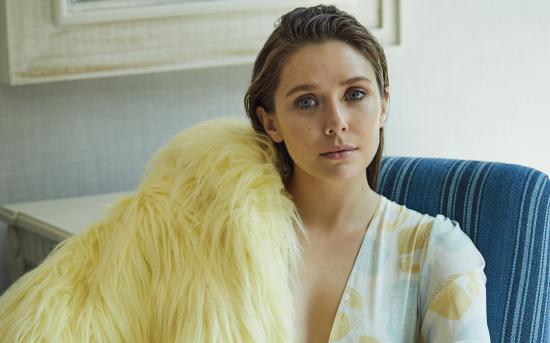Wallpaper Actress Elizabeth Olsen with a fur cape