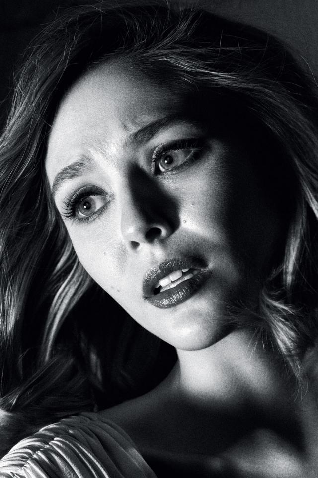 Wallpaper Actress Elizabeth Olsen in black and white photo