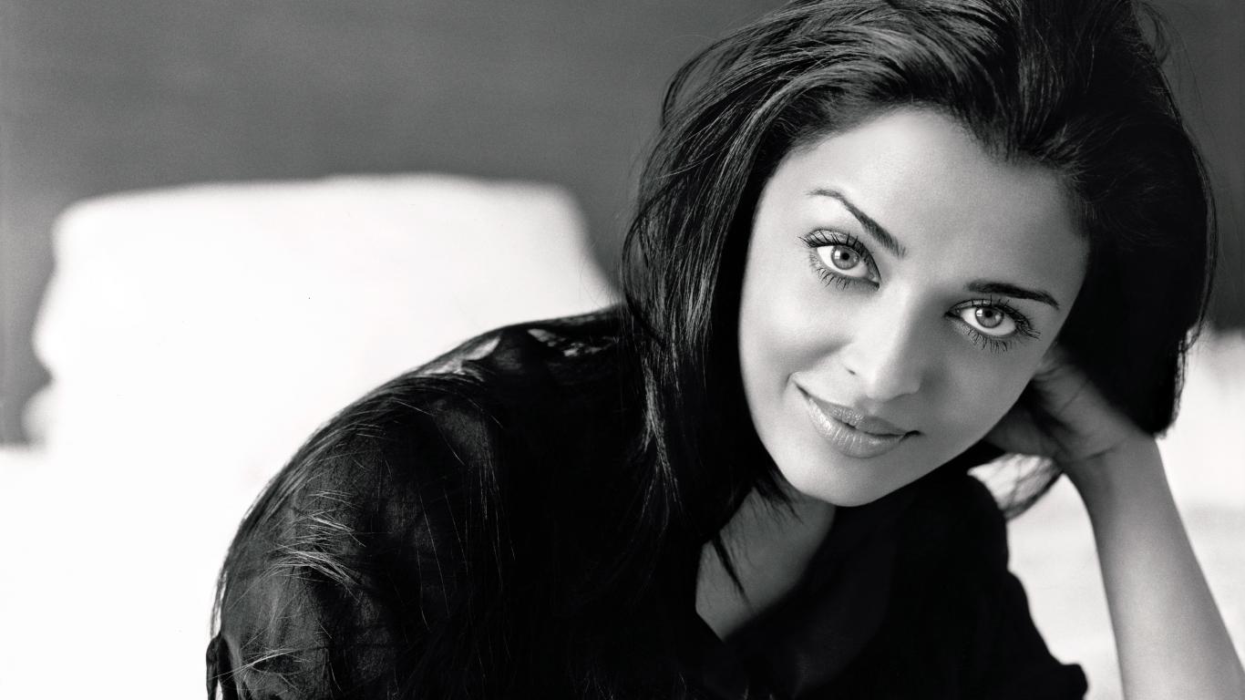 Wallpaper Indian actress Aishwarya Rai, black and white photo