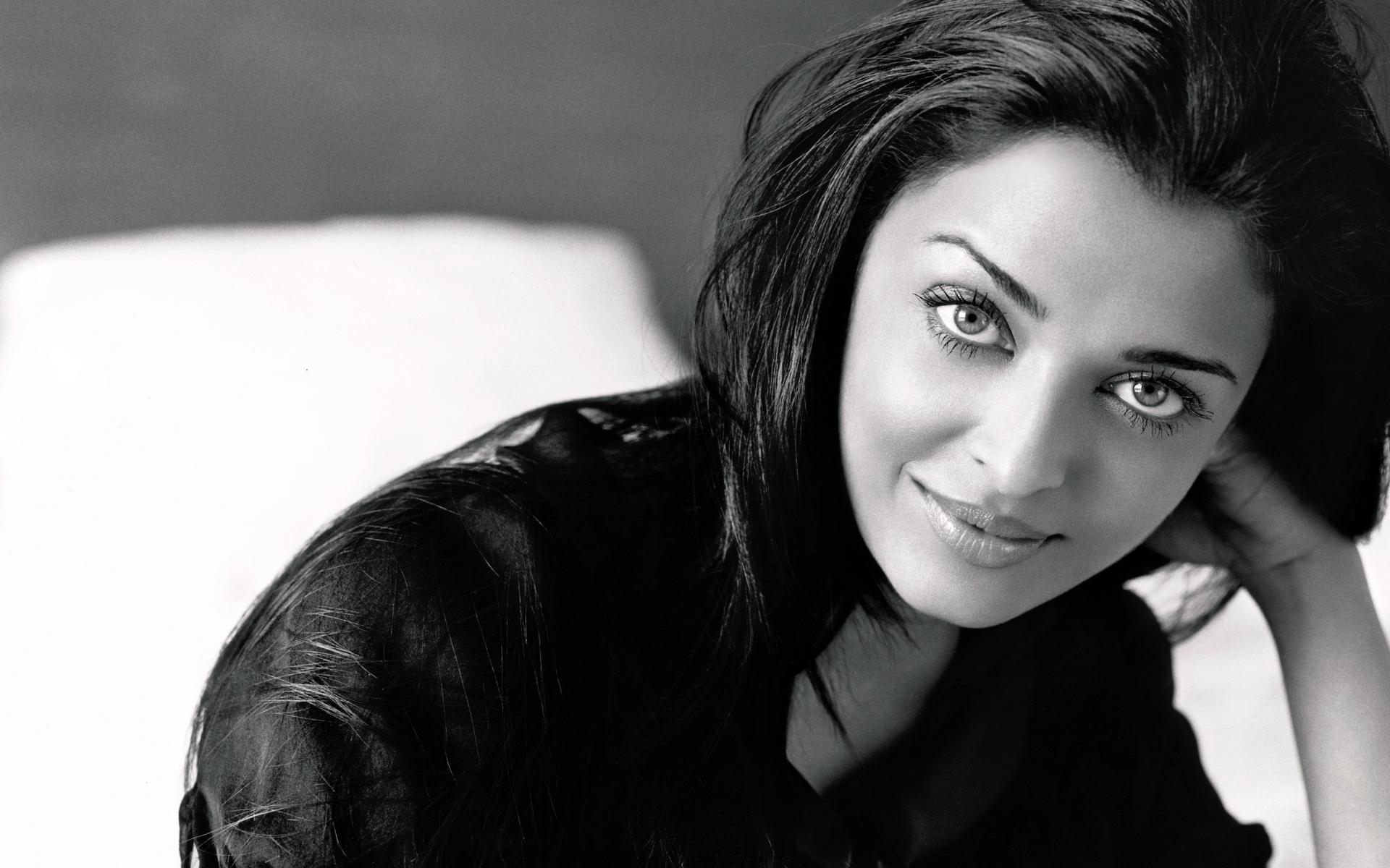 Wallpaper Indian actress Aishwarya Rai, black and white photo