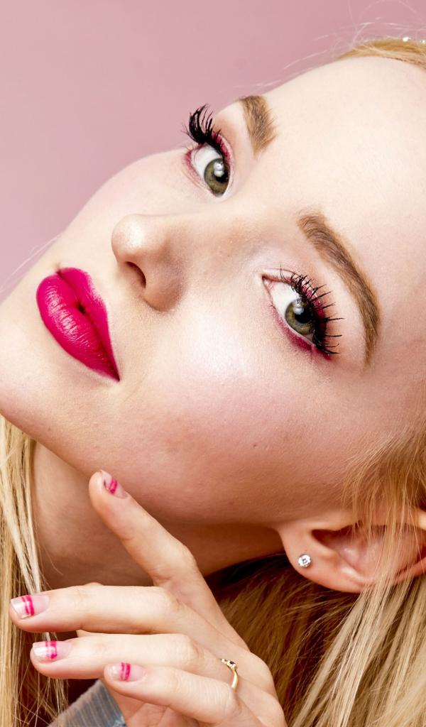Wallpaper Delicate blonde, actress Dove Cameron on a pink background