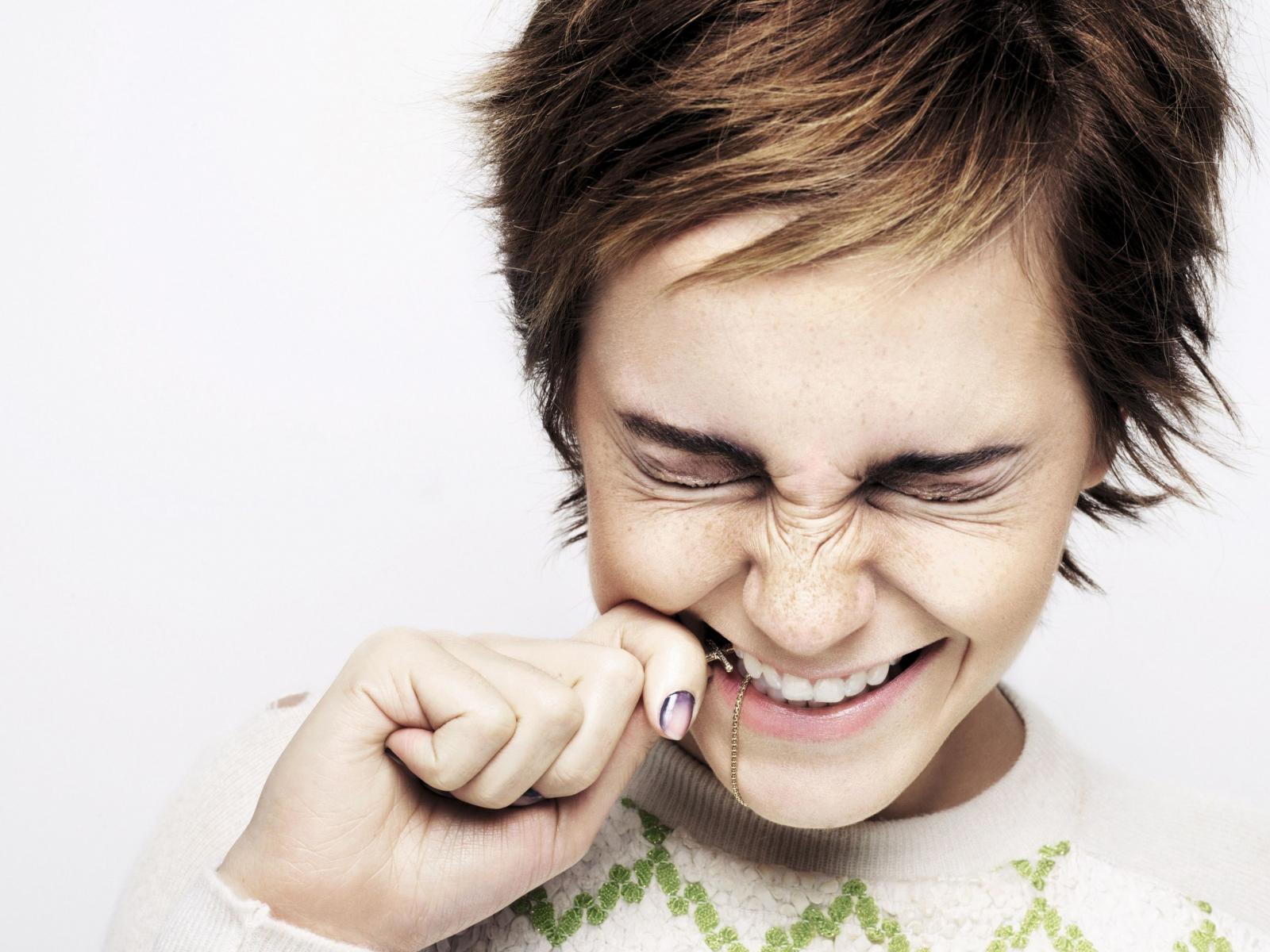 Wallpaper Laughing actress Emma Watson with a short haircut