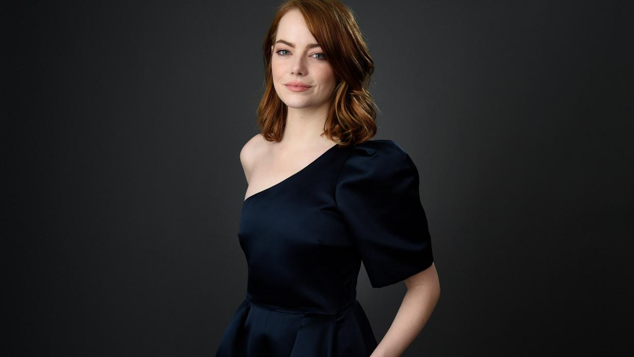 Wallpaper Red-haired actress Emma Stone in a black dress