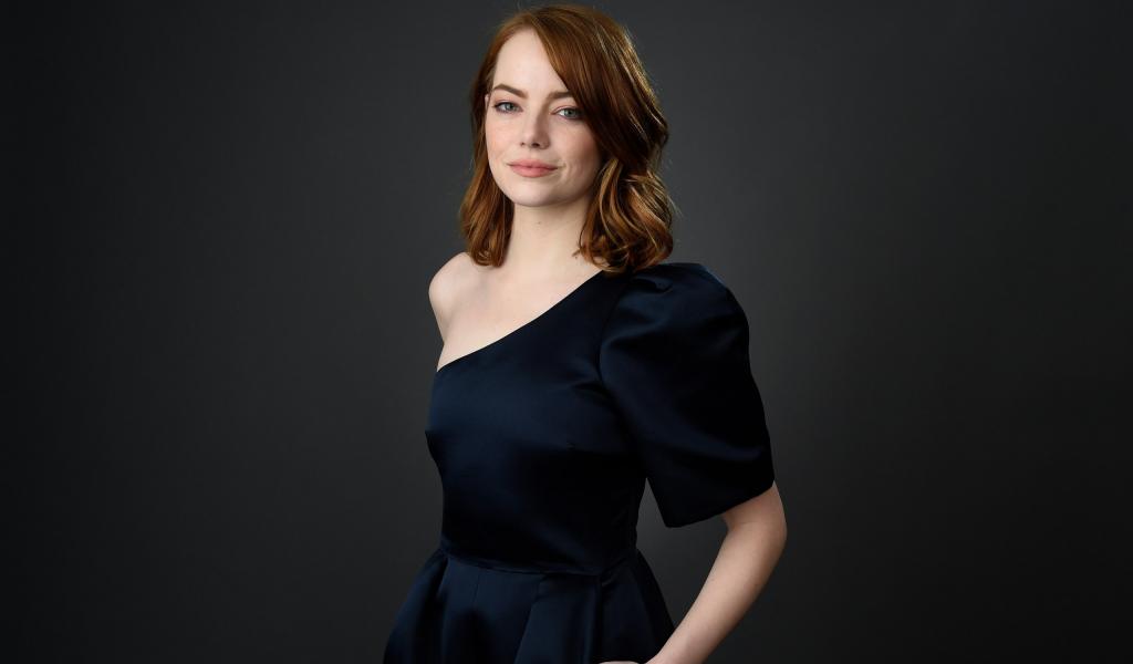 Wallpaper Red-haired actress Emma Stone in a black dress