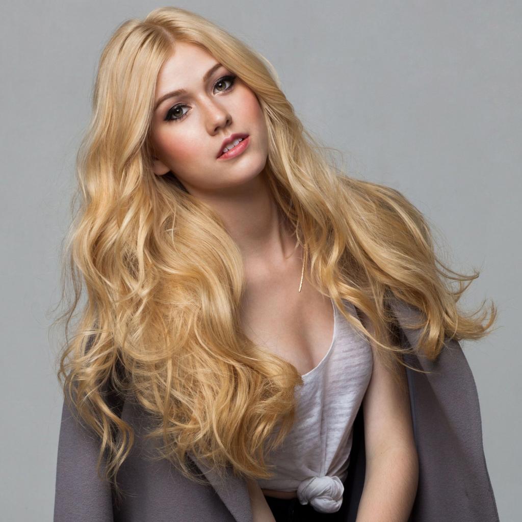Wallpaper Effective blonde Catherine McNamara on a gray background