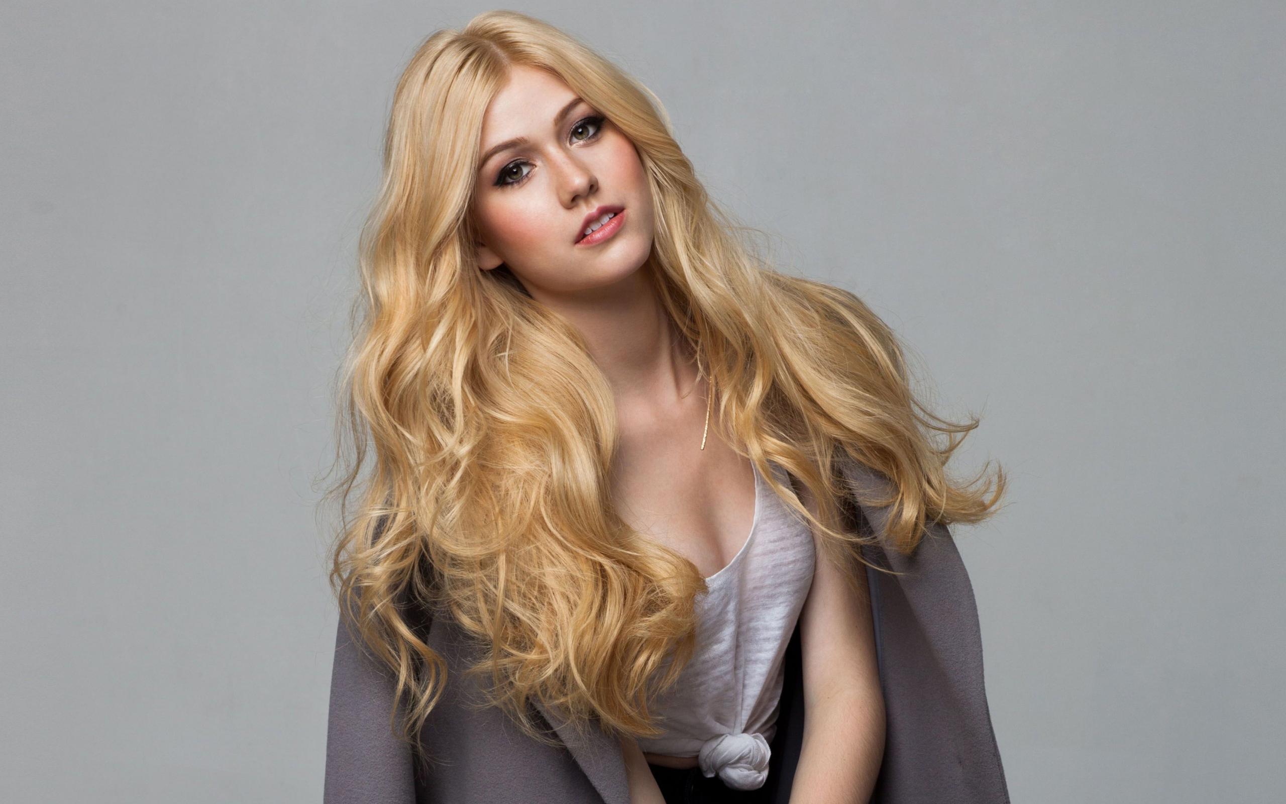 Wallpaper Effective blonde Catherine McNamara on a gray background