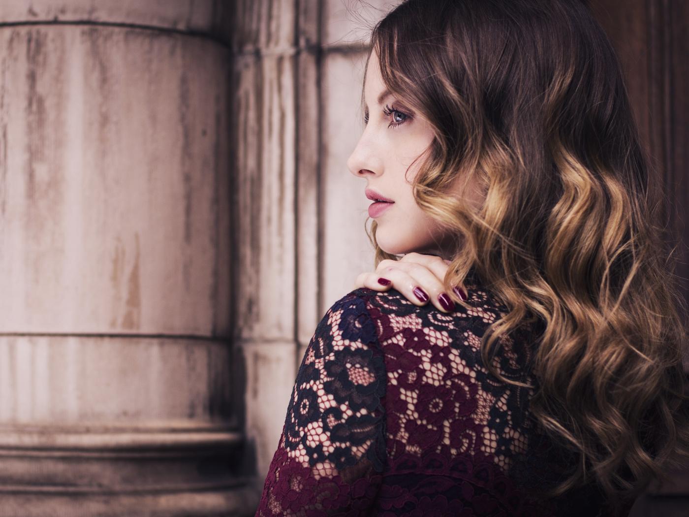 Wallpaper Beautiful tender young girl sideways