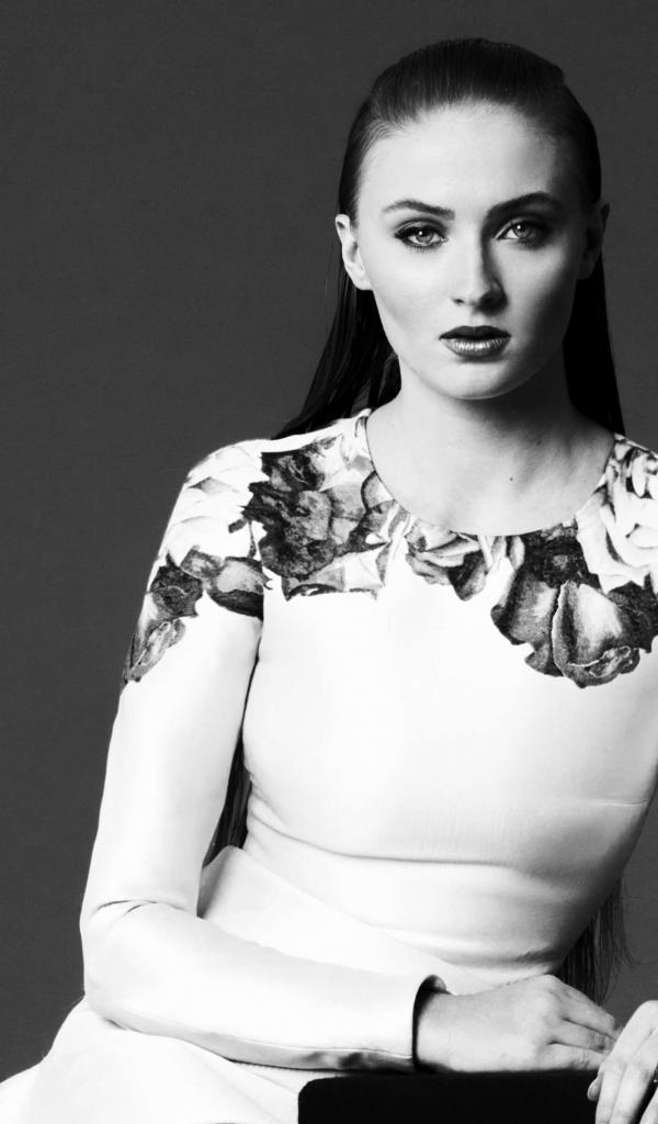 Wallpaper Actress Sophie Turner in a beautiful dress, black and white photo
