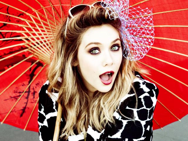 Wallpaper Actress Elizabeth Olsen with a large umbrella