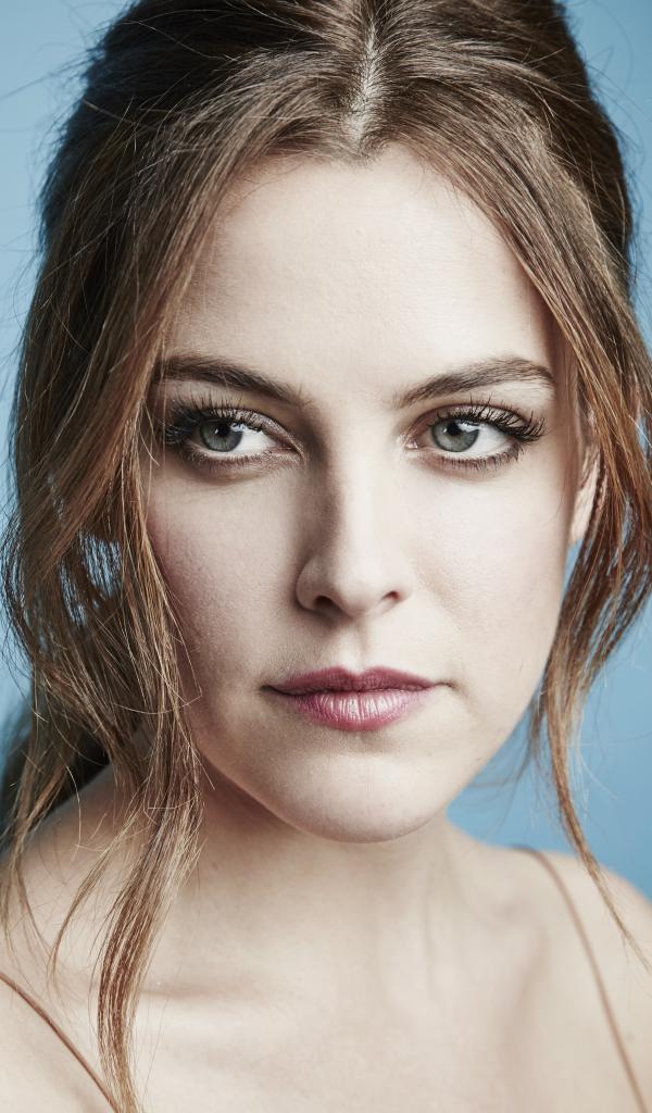 Wallpaper Beautiful actress Riley Kio photo on a blue background