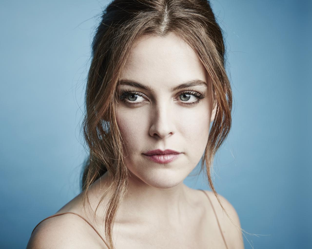 Wallpaper Beautiful actress Riley Kio photo on a blue background