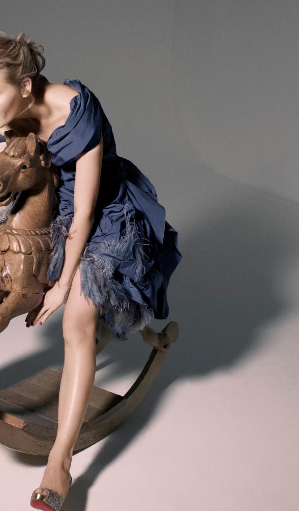 Wallpaper Actress Kirsten Dunst on a wooden horse