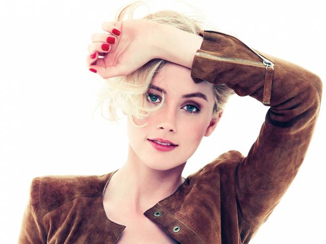 Wallpaper Actress Amber Heard with red manicure on a white background