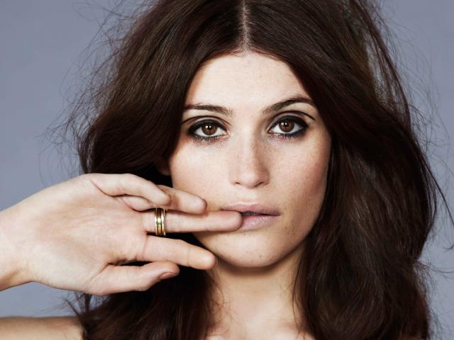 Wallpaper British actress Gemma Arterton with a hand in the face
