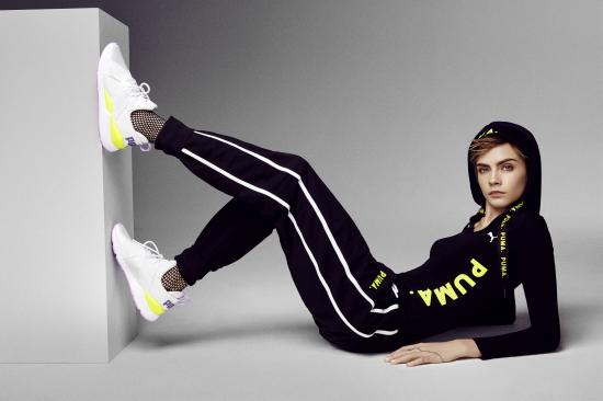 Wallpaper English model, actress Cara Delevingne in a tracksuit