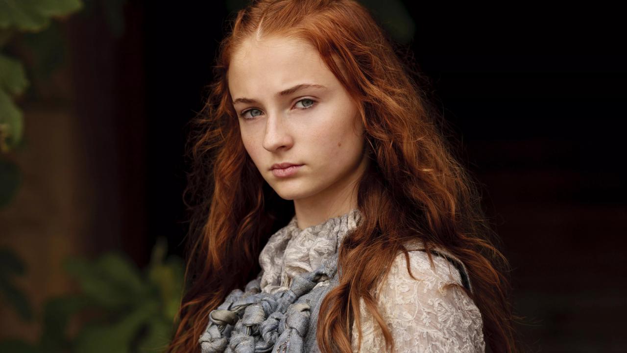 Wallpaper British actress Sophie Turner with long red hair