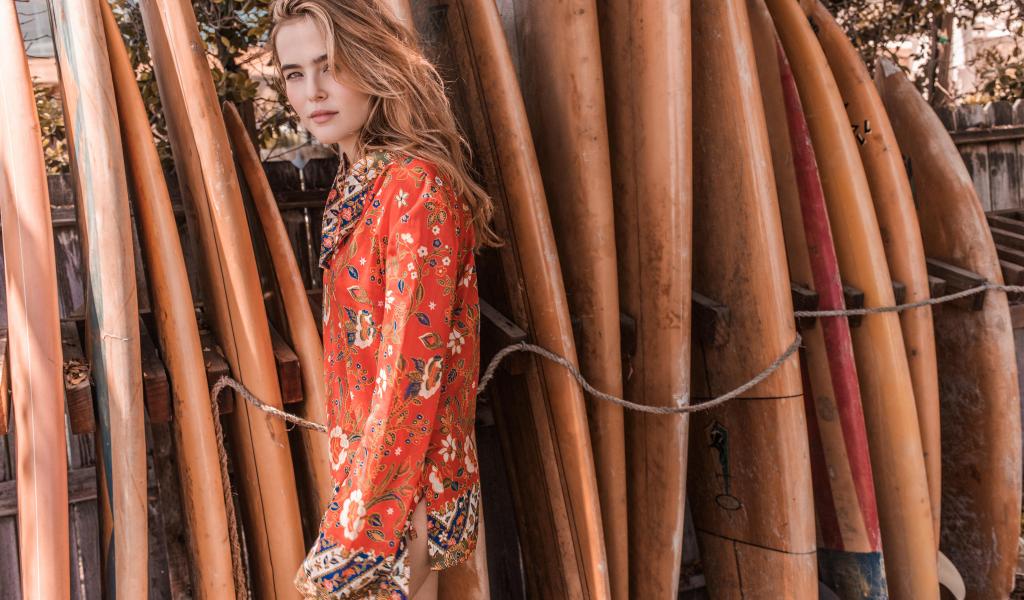 Wallpaper Actress Zoe Deutsch near the surfboard