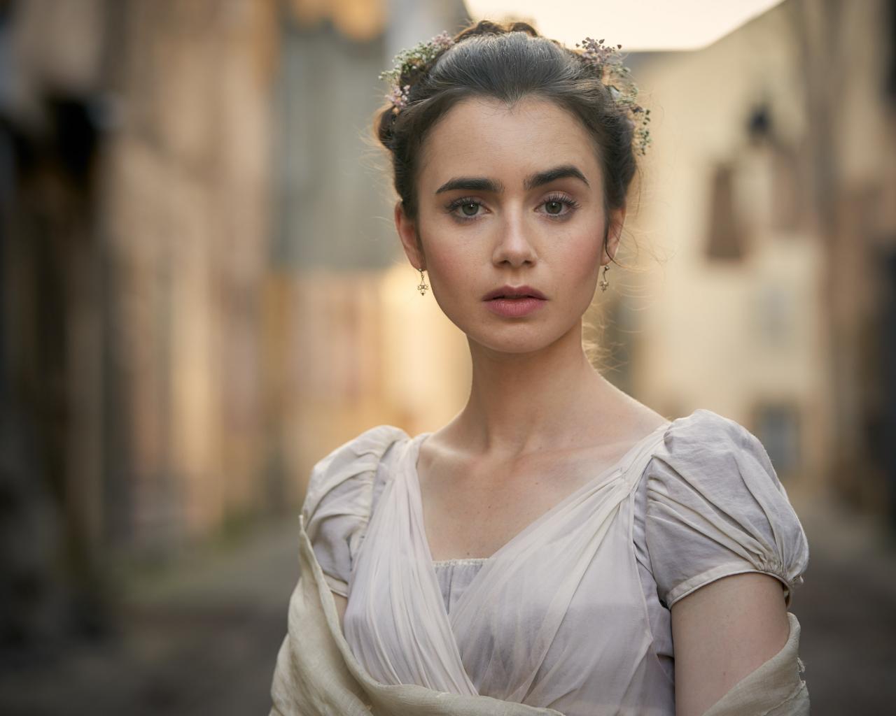 Wallpaper Actress Lily Collins in a beautiful pink dress