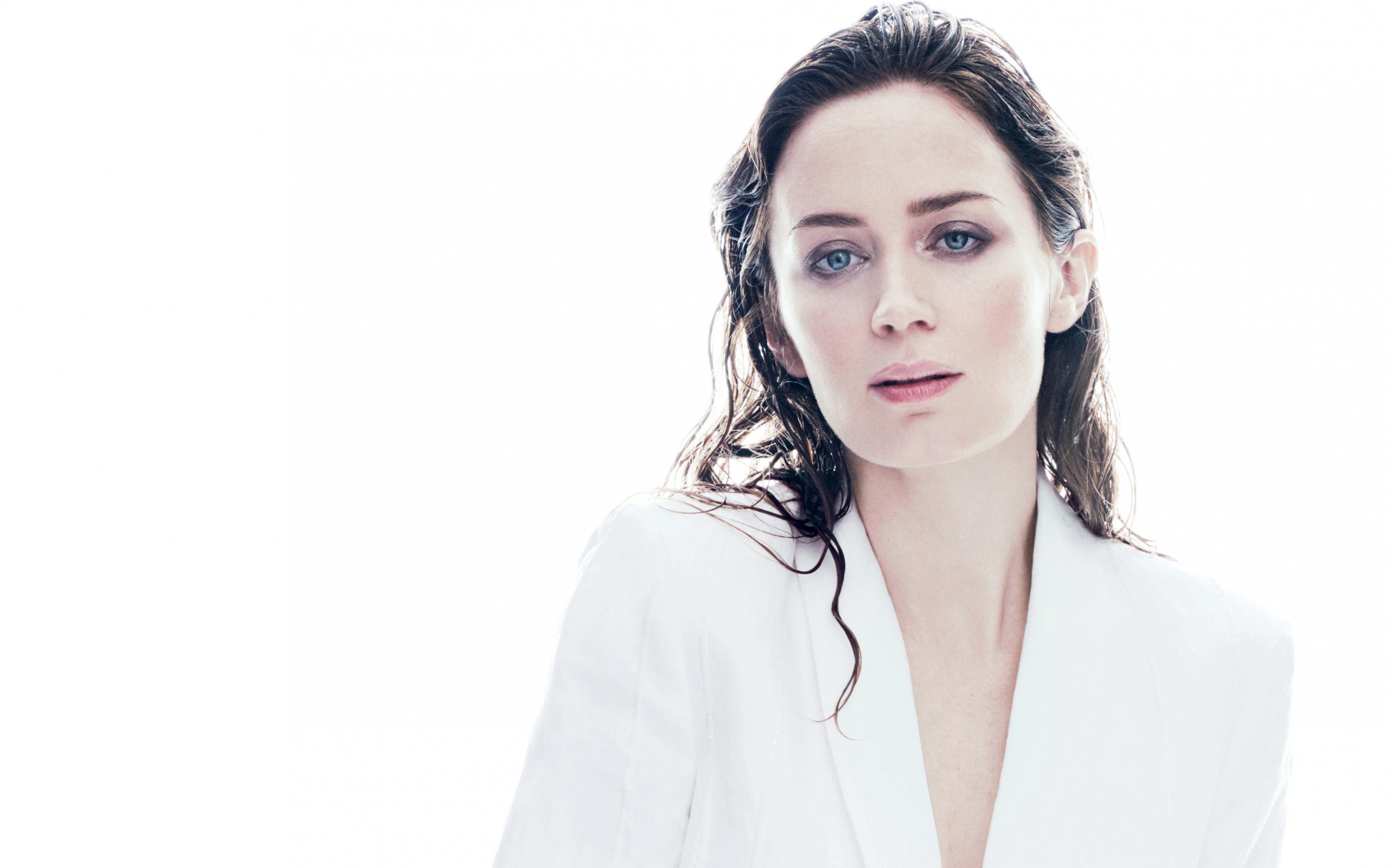 Wallpaper Actress Emily Blunt with wet hair on a white background