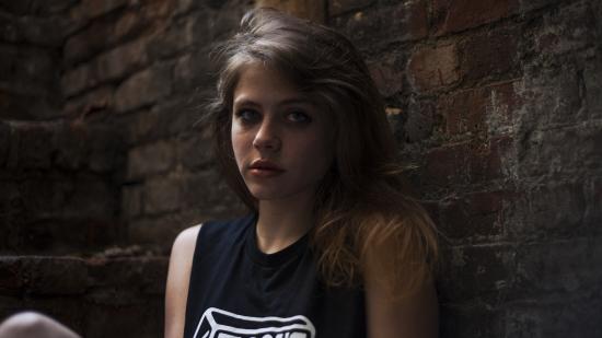 Wallpaper American actress Olivia Luccardi against the wall