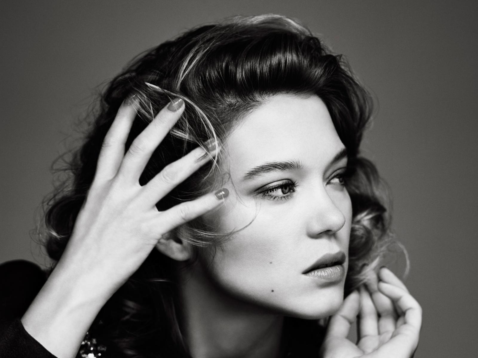 Wallpaper French actress Lea Seydoux black and white photo