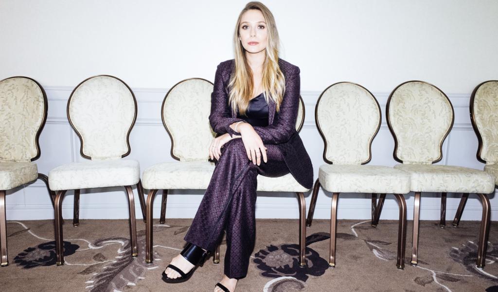 Wallpaper Beautiful actress Elizabeth Olsen in a suit sitting on a chair