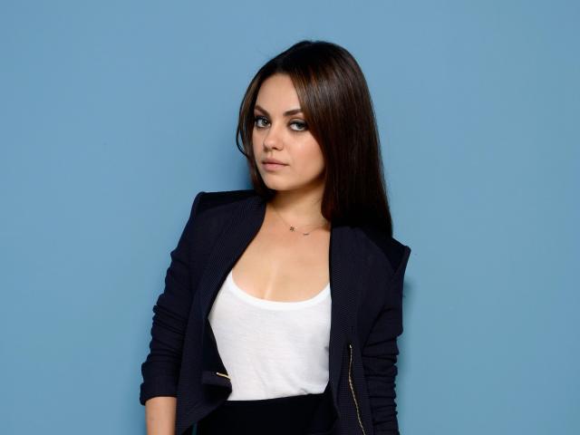 Wallpaper Beautiful stylish actress Mila Kunis on a blue background