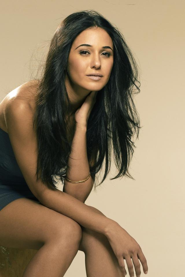 Wallpaper Canadian actress Emmanuel Sriky sitting on a wooden cube