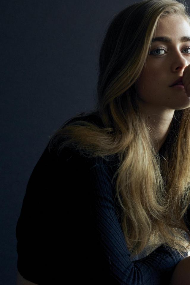Wallpaper Canadian actress Melissa Roxburgh on a gray background
