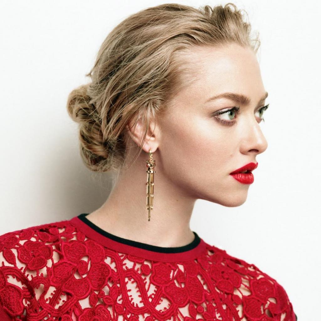 Wallpaper Beautiful blonde in a red dress, actress Amanda Seyfried