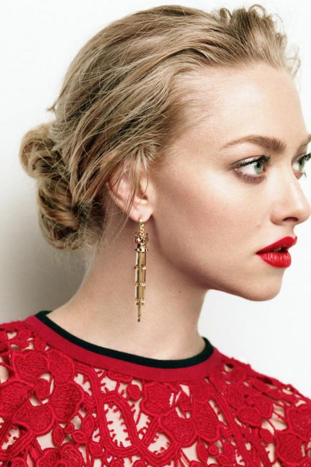 Wallpaper Beautiful blonde in a red dress, actress Amanda Seyfried