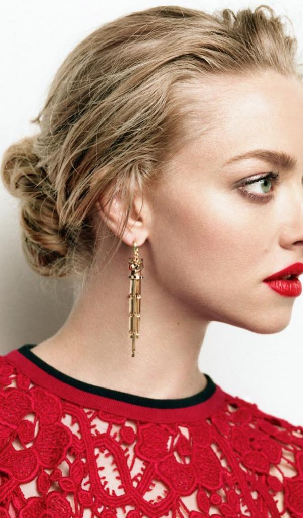 Wallpaper Beautiful blonde in a red dress, actress Amanda Seyfried