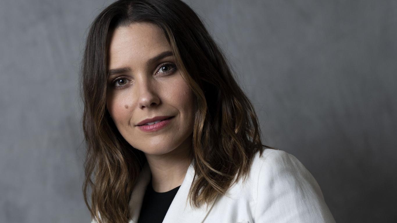 Wallpaper Stylish girl, actress Sophia Bush on a gray background