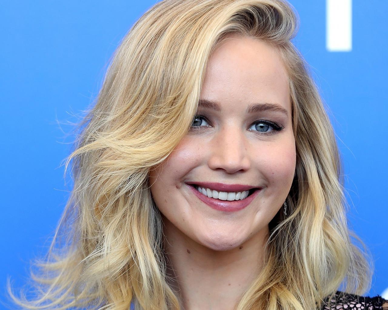 Wallpaper Smiling girl, actress Jennifer Lawrence`s face close-up