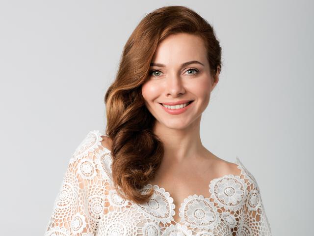 Wallpaper Smiling cute girl, actress Ekaterina Guseva on a gray background