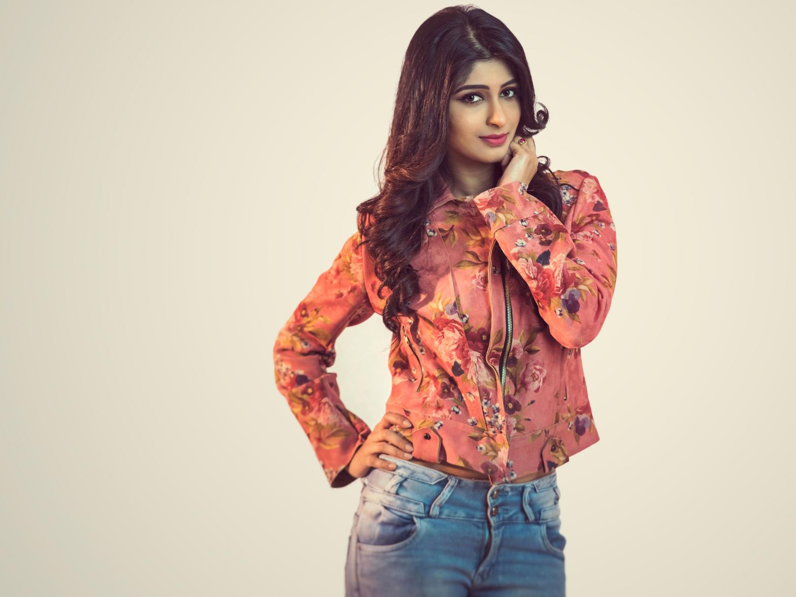 Wallpaper Beautiful girl, Indian actress Aditi Rao Hidari on a gray background