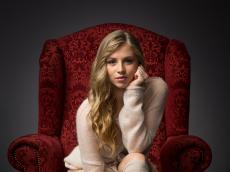 Wallpaper Beautiful smiling girl actress Madison Iceman sits on a chair