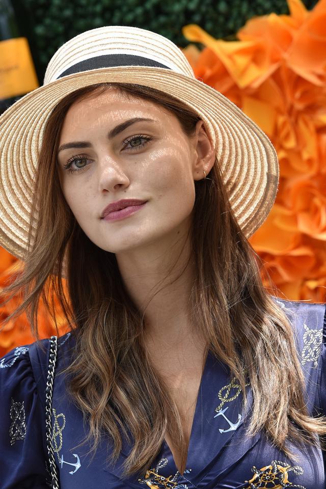 Wallpaper Australian actress Phoebe Tonkin in a hat on a background of flowers