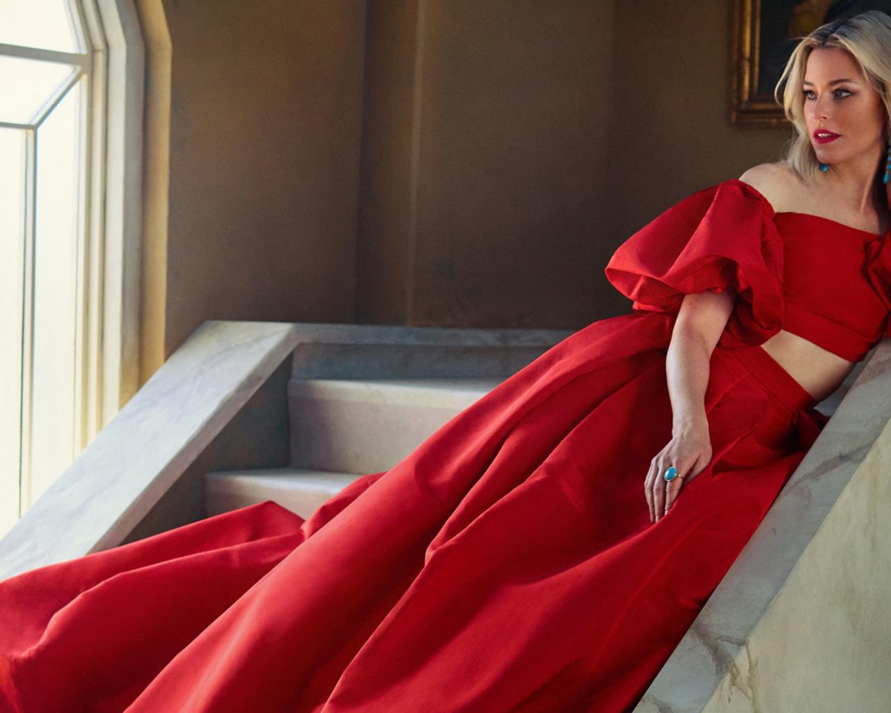 Wallpaper Beautiful blonde, actress Elizabeth Banks in a red dress