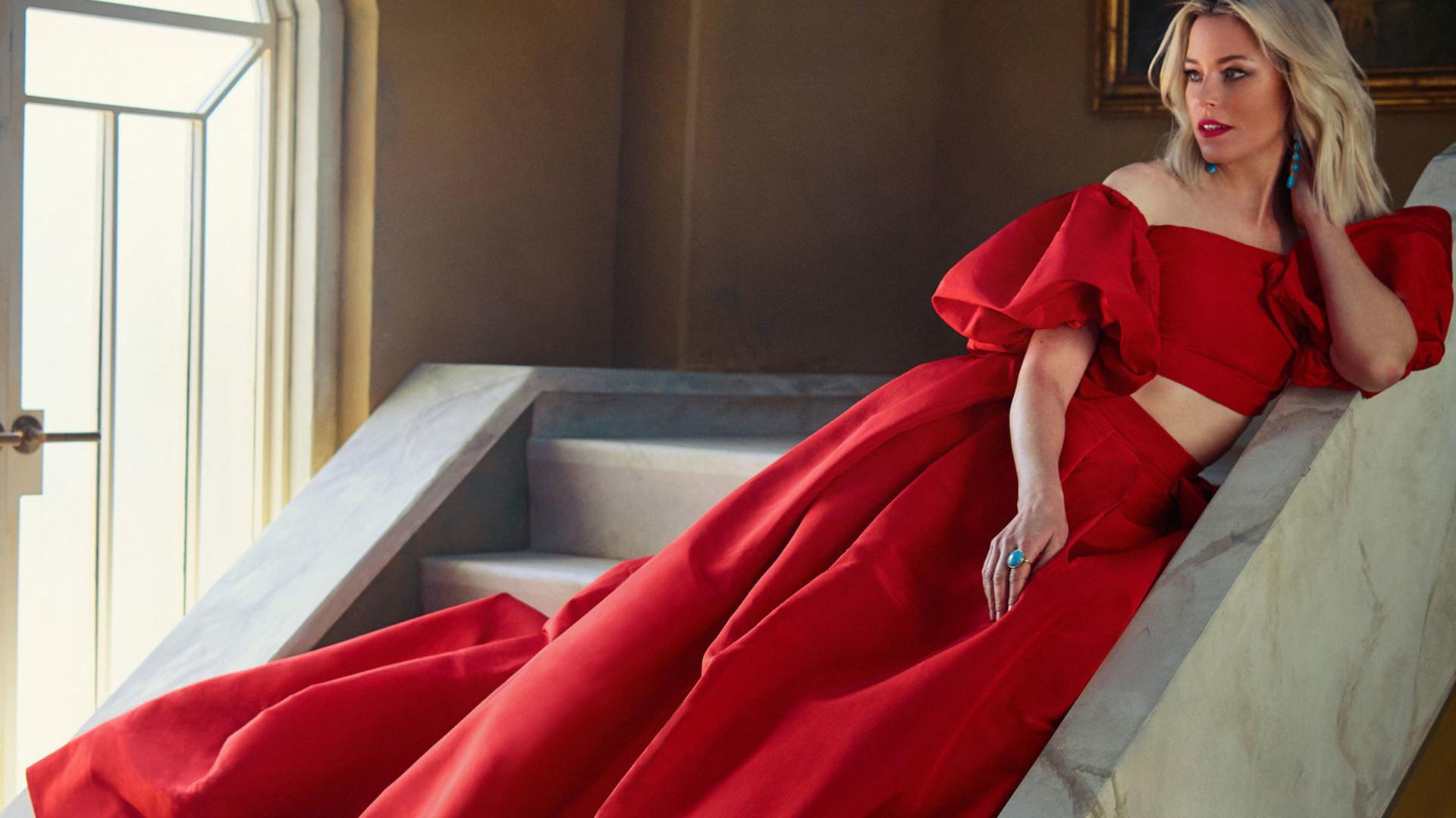 Wallpaper Beautiful blonde, actress Elizabeth Banks in a red dress