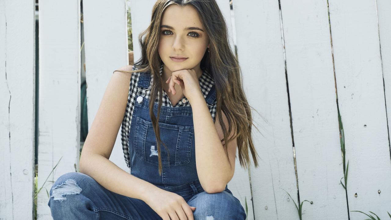 Wallpaper Young girl, actress Alex Nisenson at the fence