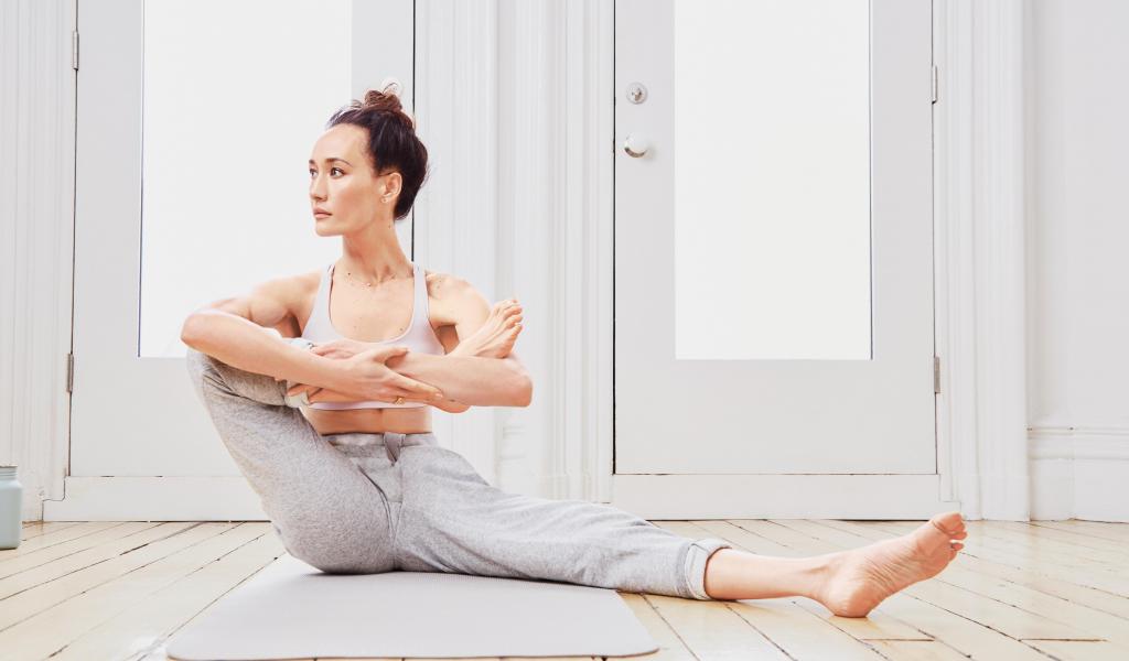 Wallpaper Actress Maggie Q does yoga