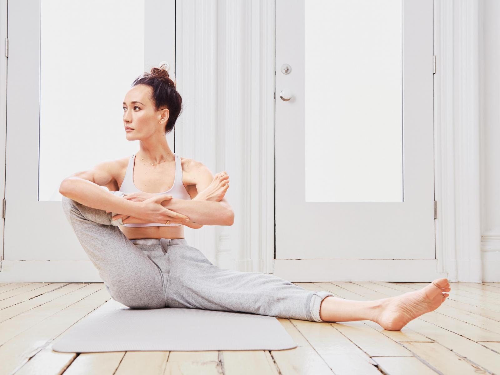 Wallpaper Actress Maggie Q does yoga