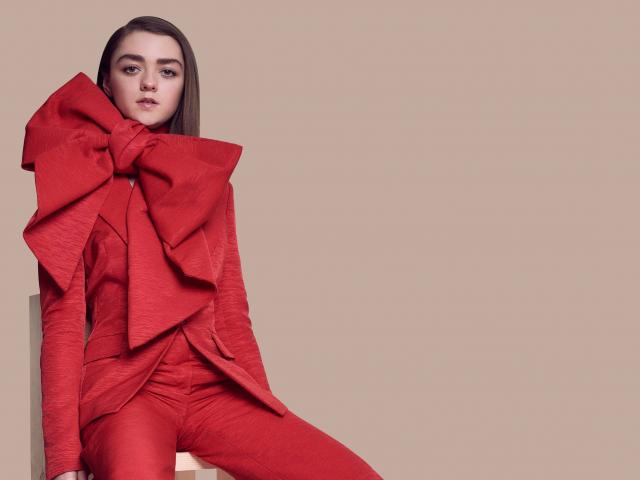 Wallpaper Actress Macy Williams in a red suit with a big bow