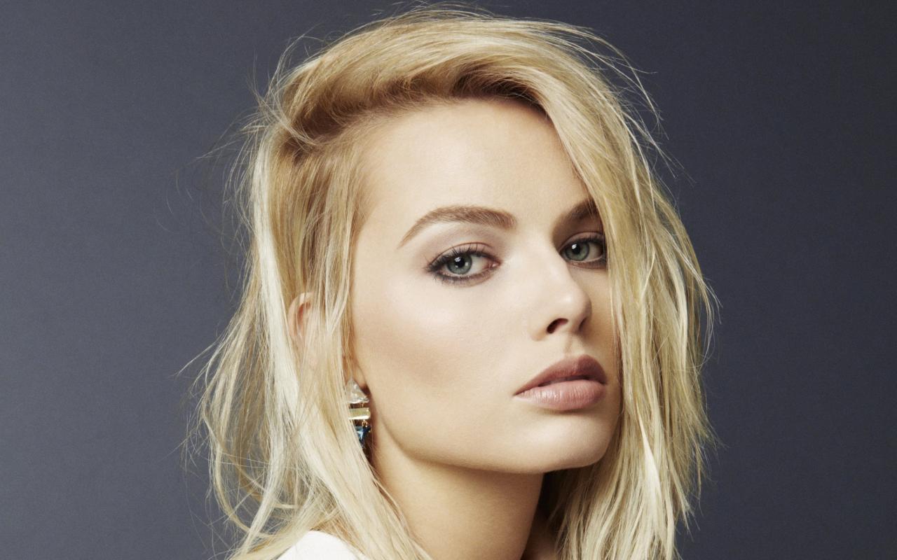 Wallpaper Beautiful blonde actress Margo Robbie on a gray background